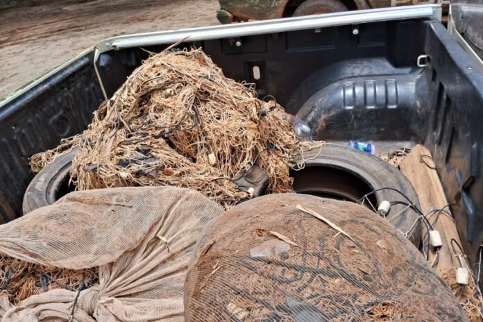 Ao irem nos locais, não foram encontrados os suspeitos. Mas pescados das espécies de pintados, jaú, palmito, jurupoca e pacu foram apreendidos. Entre os petrechos apreendidos, estão 3 redes, 1 espingarda e um freezer com os pescados.