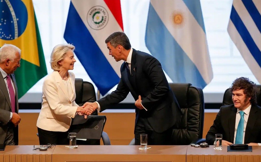 Autoridades sul-americanas e europeias defenderam o multilateralismo e o livre comércio como motores do desenvolvimento econômico durante a cerimônia de assinatura do acordo de livre comércio entre o Mercosul e a União Europeia, realizada neste sábado (17), no Paraguai.