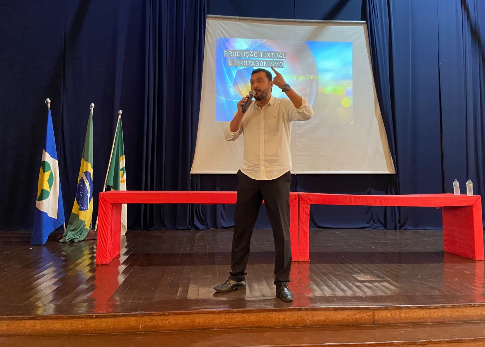 No evento de encerramento do projeto Além Mato Grosso, o secretário Allan Kardec conversou com estudantes do 3º ano do Ensino Médio e professores da unidade. Na oportunidade ainda foram entregues certificados, a duas professoras, simbolizando todos os professores que participaram da Formação para a compreensão do Novo Ensino Médio, e realizadas duas palestras pelos gestores dos cursos, Edu Arruda e Sérgio Cintra.