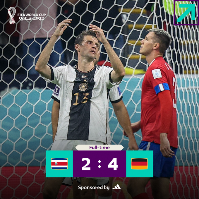 Em uma partida muito movimentada, a Alemanha derrotou a Costa Rica por 4 a 2, na tarde desta quinta-feira (1) no Estádio de Al Bayt. Porém, o resultado foi insuficiente para os germânicos alcançarem as oitavas de final da Copa do Catar, pois ficaram na terceira posição do Grupo E da competição.