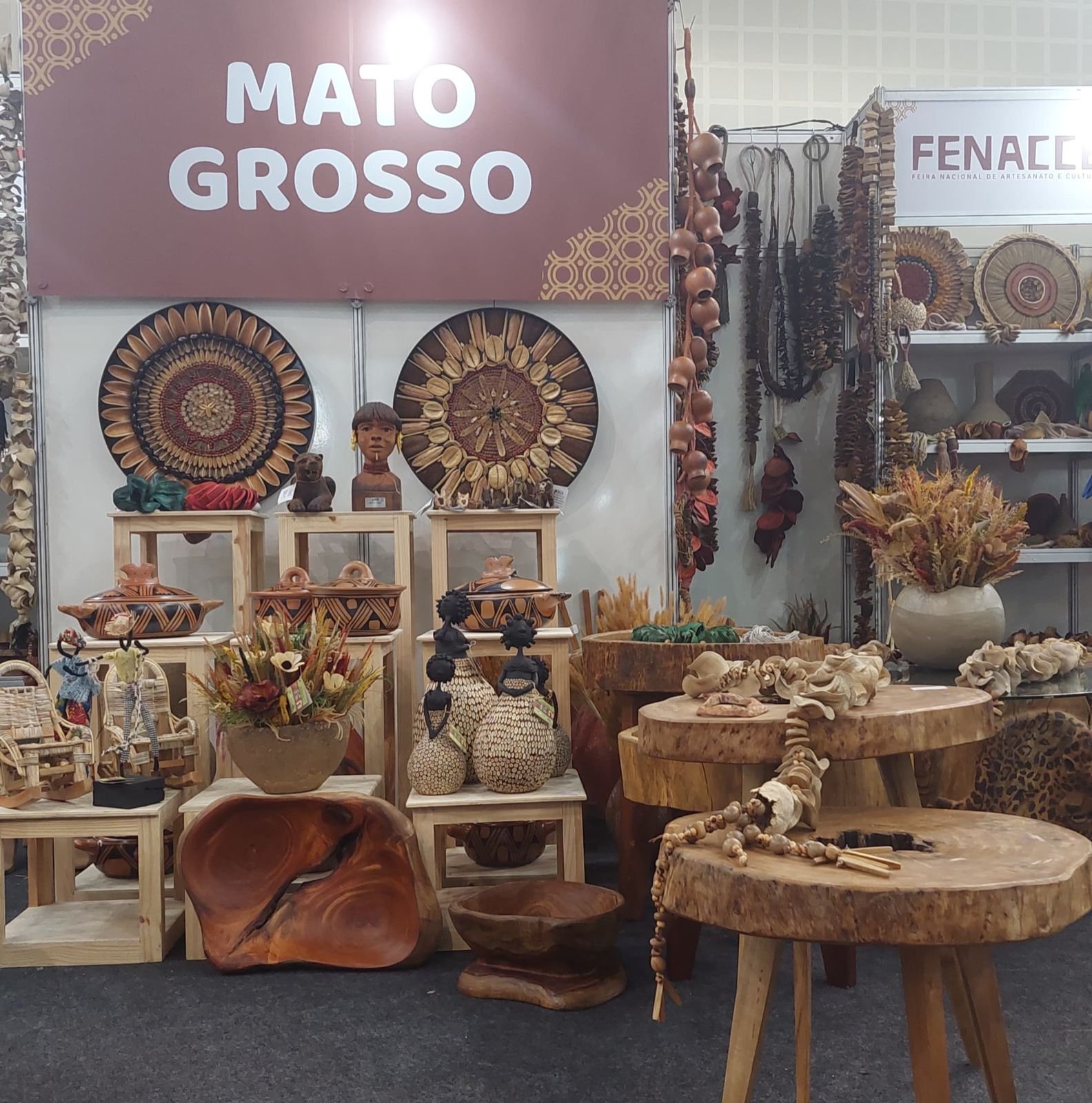 São vendidas peças em madeira, penas, colares de sementes/miçangas, cerâmicas, tecelagem e sementes de artesãos dos municípios de Cuiabá, Várzea Grande, Paranatinga, São José do Rio Claro, Barra do Bugres e Gaúcha do Norte.