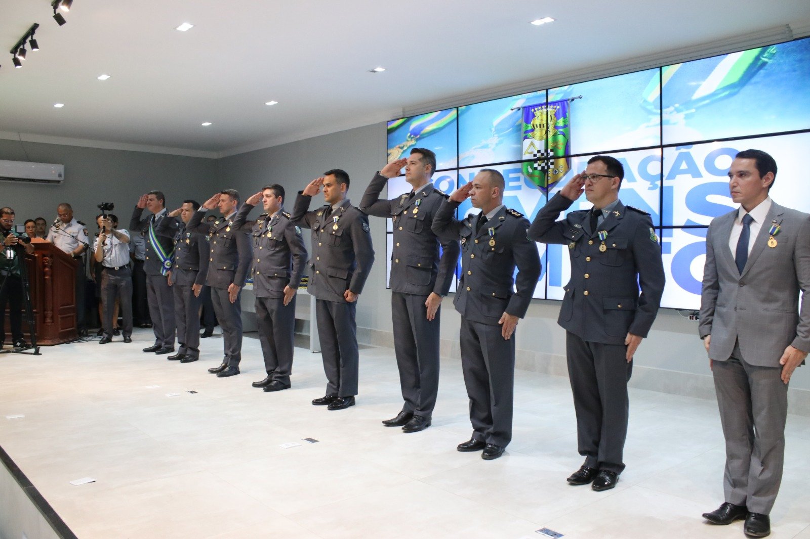 As condecorações são as honrarias máximas concedidas pela instituição e são divididas pelas categorias: Grande Oficial, Grau Oficial e Grau Cavalheiro. O comandante-geral da Polícia Militar, coronel Alexandre Corrêa Mendes, agradeceu a presença dos homenageados na solenidade e relembrou a história da instituição em que a primeira estrutura de polícia existente dentro do Estado levava a denominação “Homens do Mato”.