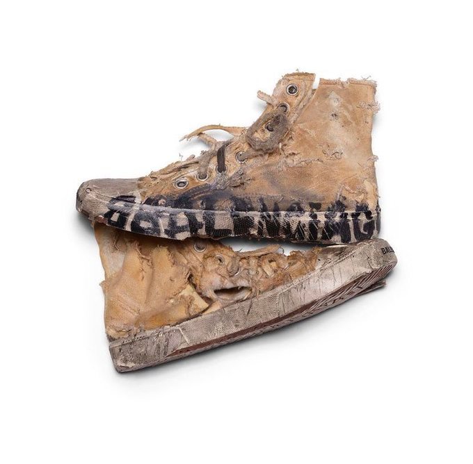 A Balenciaga lançou recentemente modelos de tênis “destroyed” (custando mais de R$ 10.000,00!) com a justificativa de inspirar reflexões sobre luxo e padrões estéticos no contexto conflituoso em que a Europa vive atualmente. Lembrando que o diretor criativo é Demna, um refugiado de guerra nascido na Geórgia. Ainda assim, sinceramente não é meu estilo. Mas existe mercado, caso contrário, a marca nem perderia tempo e dinheiro na confecção.