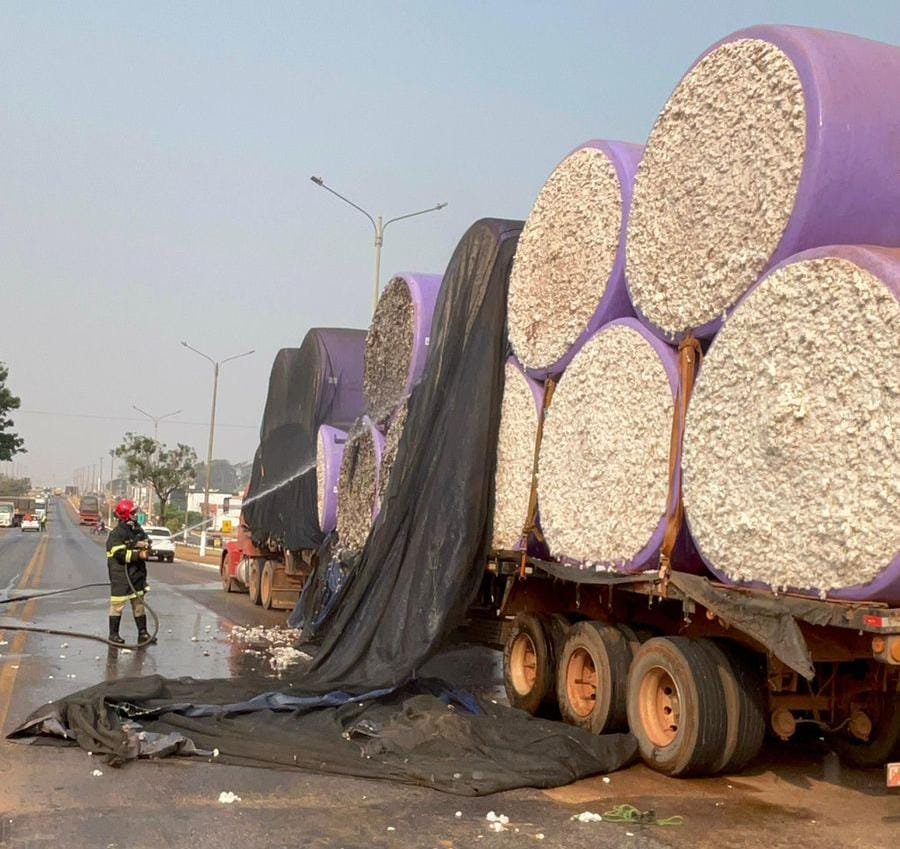 Ao receber a chamada de emergência via 193, a equipe da 11ª Companhia Independente Bombeiro Militar (11ª CIBM) se deslocou para o local e ao chegar constatou que o fogo havia atingido parte dos rolos de algodão que estavam no reboque do veículo.