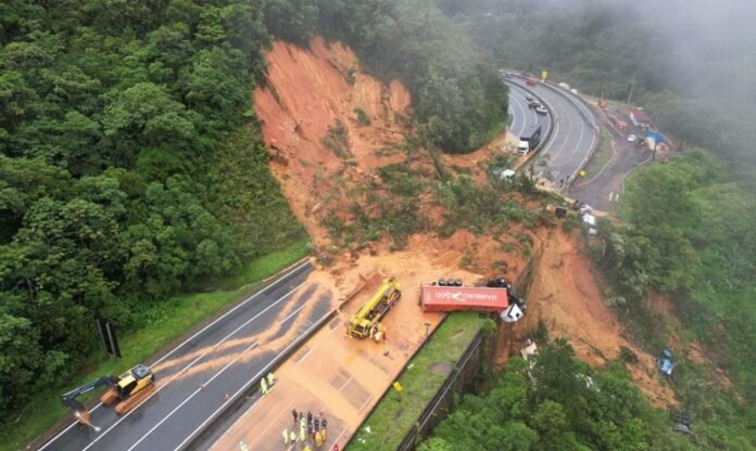 As equipes do Corpo de Bombeiros, da Polícia Militar e da Polícia Científica trabalham ininterruptamente no atendimento à ocorrência, que atingiu o km 669 da rodovia na região da Serra do Mar.