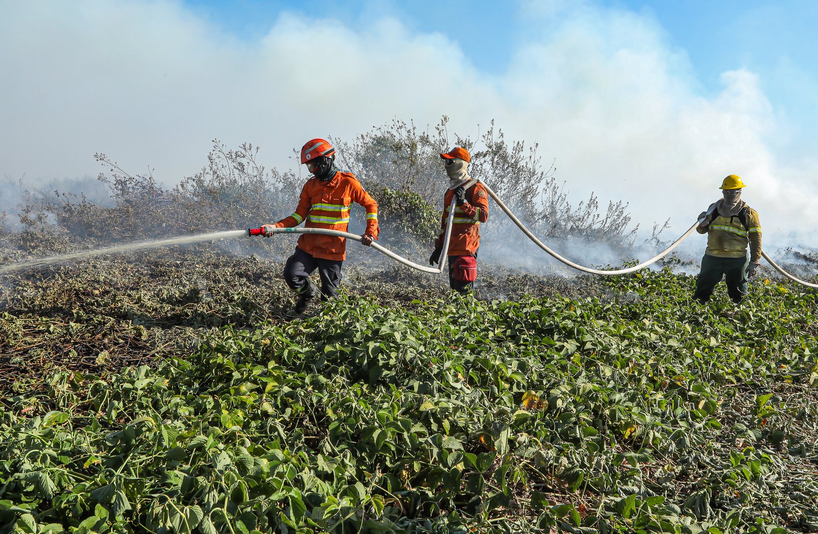 Os bombeiros de Mato Grosso fazem o estudo da área para determinar pontos de entrada por terra para retomar o combate.