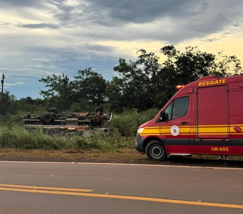 A equipe do 6º Núcleo Bombeiro Militar foi acionada por volta das 16h20. Ao chegar ao local, os militares encontraram o caminhão tombado às margens da rodovia e a vítima presa às ferragens.