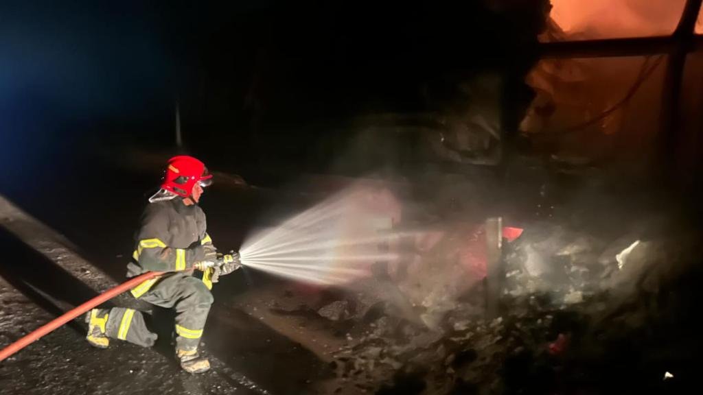 Ao chegarem, os bombeiros constataram que o semirreboque da carreta já estava completamente tomado pelas chamas. Apenas o cavalo mecânico foi preservado, após o motorista conseguir desengatar e isolar a parte frontal do veículo.