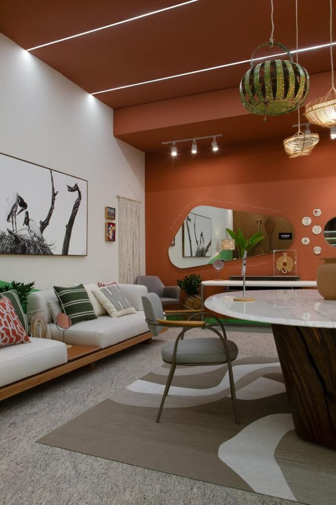 A arquiteta Ana Livero mergulhou na criação de um ambiente singular na CASACOR Mato Grosso 2023, transformando o espaço comercial Ótica Gustavo Eyewear em uma obra-prima que mescla biofilia, arte indígena e a riqueza cultural de Mato Grosso. A sua abordagem biofílica, como explicado pela própria arquiteta, é uma “conexão orgânica com a natureza, integrando elementos naturais ao ambiente construído para promover bem-estar e equilíbrio”.