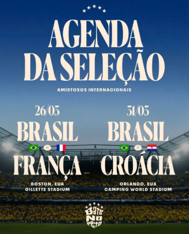 A Confederação Brasileira de Futebol (CBF) anunciou as datas dos amistosos da Seleção Brasileira contra França e Croácia, que integram a reta final de preparação para a Copa do Mundo de 2026, marcada para ocorrer entre 11 de junho e 19 de julho, no México, no Canadá e nos Estados Unidos.