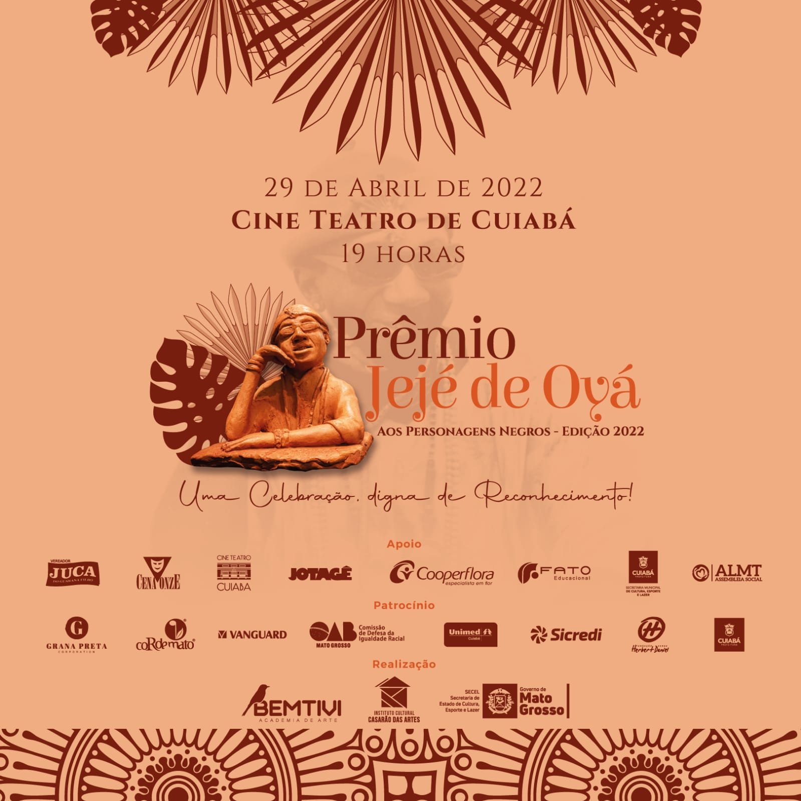 Uma das figuras mais conhecidas e irreverentes da cultura cuiabana, Jejé de Oyá marcou sua época como símbolo da luta contra o preconceito racial e sexual. Para celebrar sua história e reconhecer personalidades negras de hoje que são destaque na sociedade e em suas áreas de atuação, o Prêmio Jejé de Oyá acontece neste dia 29, às 19h, no Cine Teatro de Cuiabá. A entrada é gratuita. O projeto foi idealizado por Jeferson Bertoloti e viabilizado por meio de emenda parlamentar atendida pela Secel-MT.