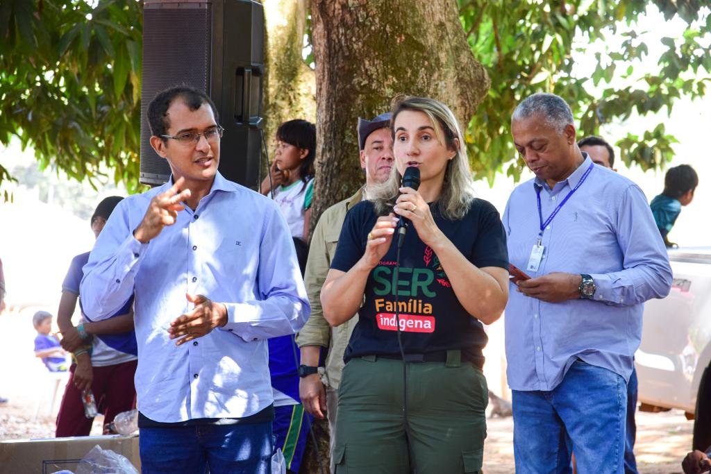 “Nós temos uma programação a ser realizada junto às aldeias indígenas de Mato Grosso, não só para levarmos as cestas de alimentos e os kits de higiene e limpeza, mas também para levarmos os serviços de cidadania por meio dos mutirões e, principalmente, realizar o levantamento das famílias que ainda não estão inseridas no SER Família Indígena, que é um programa idealizado pela nosso primeira-dama Virginia Mendes, que tem um carinho mais que especial pelos povos indígenas. Esse benefício recebido pelo cartão do SER Família Indígena é muito importante, pois através dele as mulheres indígenas podem adquirir alimentos diferentes daqueles que são entregues na cesta, e que irão atender ainda mais a família. Nosso objetivo é estar cada vez mais perto dos povos indígenas, auxiliando da melhor forma e com eficiência”, disse a secretária da Setasc, Grasi Bugalho.