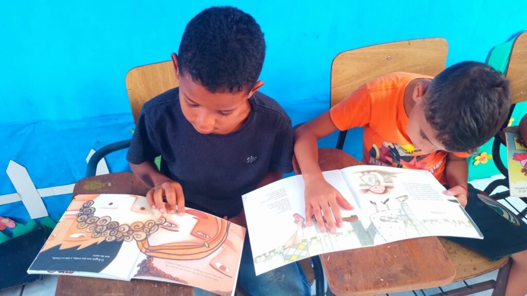 Além de ler histórias para as crianças, a orientadora social estimula a leitura. “Muitos deles durante o encontro acabam buscaste interagir por meio de leituras e outras atividades realizadas durante a nossa reunião semanal”.