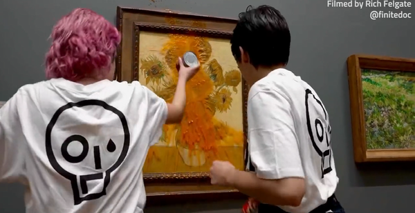 “O que vale mais, a arte ou a vida? (…) Vocês estão mais preocupados com a proteção de uma pintura ou com a proteção do nosso planeta e das pessoas?” Estas foram as palavras de ativistas da ONG Just Stop Oil ao jogar sopa de tomate na obra Girassóis (1888) de Van Gogh, na National Gallery de Londres na última sexta-feira. A organização defende a suspensão imediata de todos os futuros licenciamentos para exploração, desenvolvimento e produção de petróleo e gás no Reino Unido. O quadro, estimado em 84,2 milhões de libras (R$ 506,2 milhões), tem proteção de vidro e saiu ileso do ato, mas as ativistas foram detidas.