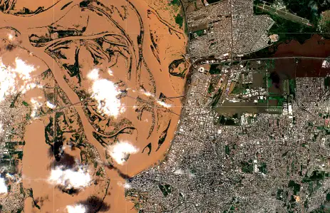 Embora a intensidade das chuvas tenha diminuído nas últimas 24 horas em quase todo o Rio Grande do Sul, o nível do Guaíba continua subindo, alarmando a população da região metropolitana de Porto Alegre e causando mais prejuízos e transtornos.