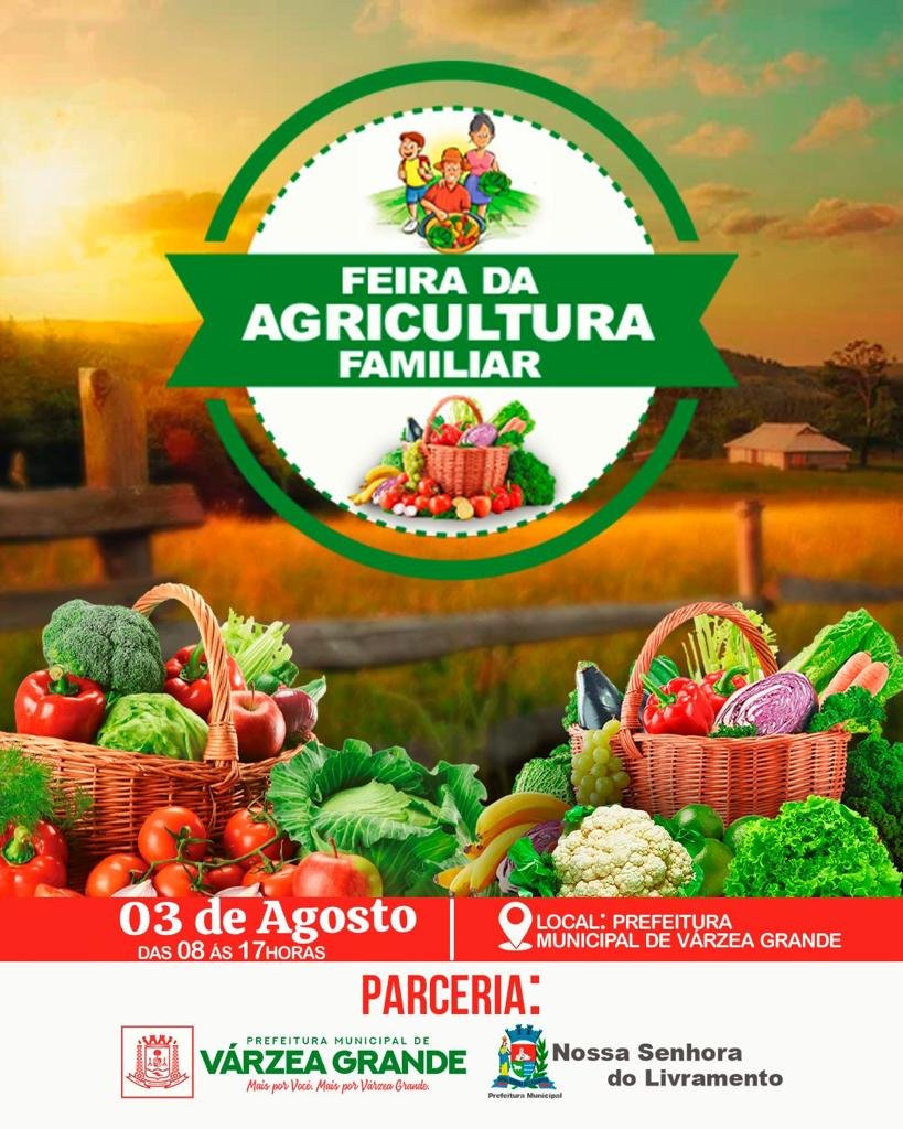 Nesta quinta-feira, 03 de agosto, das 8h às 17 horas, acontecerá mais uma edição da Feira de Agricultura Familiar da Prefeitura de Várzea Grande em parceria com a prefeitura de Nossa Senhora do Livramento. O evento será realizado no Paço Municipal Couto Magalhães e contará com a participação de pelo menos 25 pequenos agricultores.