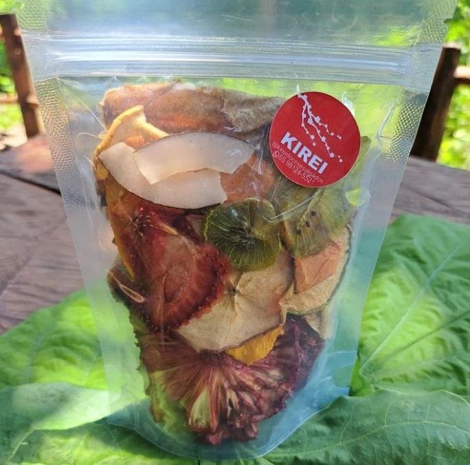 A desidratação das frutas é uma forma de aproveitar melhor a produção. “A ideia dos meus produtos é utilizar as frutas que tenho demanda lá. Na safra das frutas, tiro as maduras, faço a higienização e congelo, e vou usando de acordo com a demanda, evitando o desperdício”, pontuou Elisa.