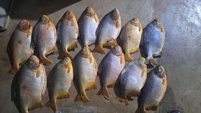 Fiscais da Coordenadoria de Fiscalização de Fauna da Secretaria Estadual de Meio Ambiente (Sema) apreenderam 52 quilos de pescado na comunidade de Porto Cercado, em Poconé, durante vistoria em um pesqueiro, no último sábado (22.06). Foram apreendidos 13 pacus, 75 pacupevas, 15 piraputangas e 8 piranhas.