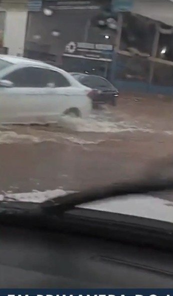 Em fevereiro, em Primavera do Leste, um veículo utilitário chegou a ficar ilhado após uma forte chuva, com parte do carro submersa em meio às ruas alagadas, conforme registros feitos por moradores.