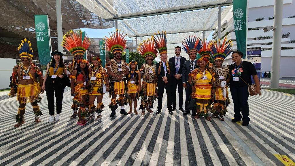 Uma comitiva com sete indígenas pareci acompanhou as agendas da delegação mato-grossense na COP 28, em Dubai