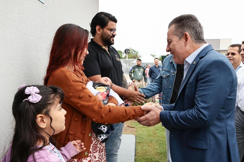 Durante a cerimônia, o governador Mauro Mendes ressaltou que o programa foi idealizado pela primeira-dama Virginia Mendes e tem transformado vidas. “Hoje é um dia que marca a vida de todos nós. Criamos um programa que ajuda as famílias a pagarem a entrada da casa própria, garantindo segurança e dignidade”, afirmou. Ele também anunciou a instalação de câmeras do programa Vigia Mais MT no condomínio, reforçando a segurança dos novos moradores.