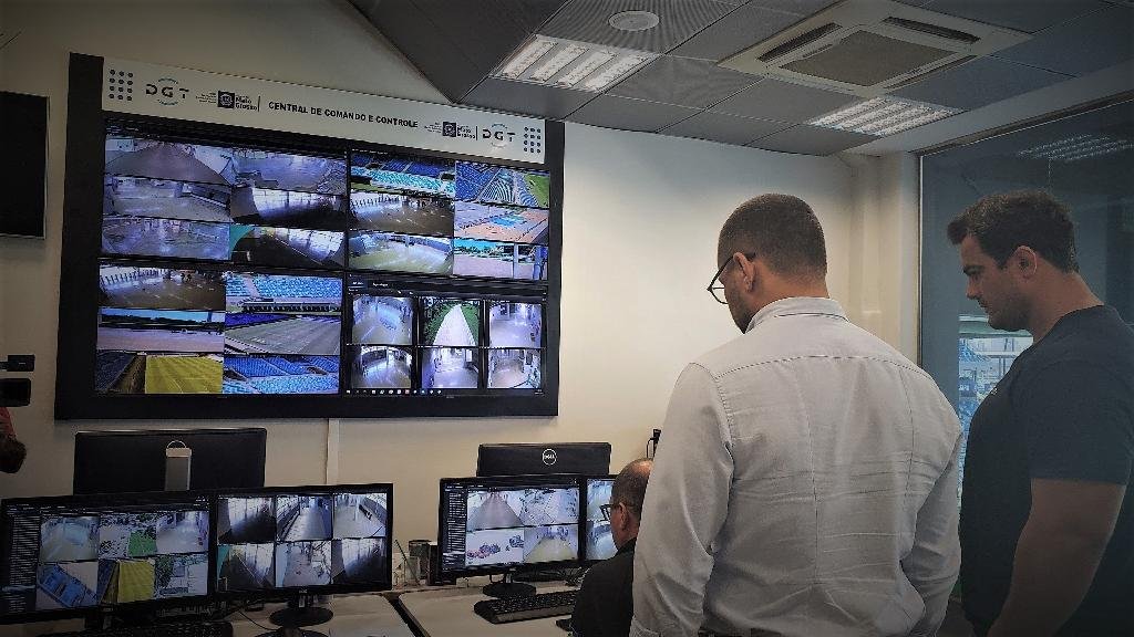 São 97 câmeras 360 graus e uma Central de Comando e Controle que permite a identificação de ocorrências no espaço e entorno