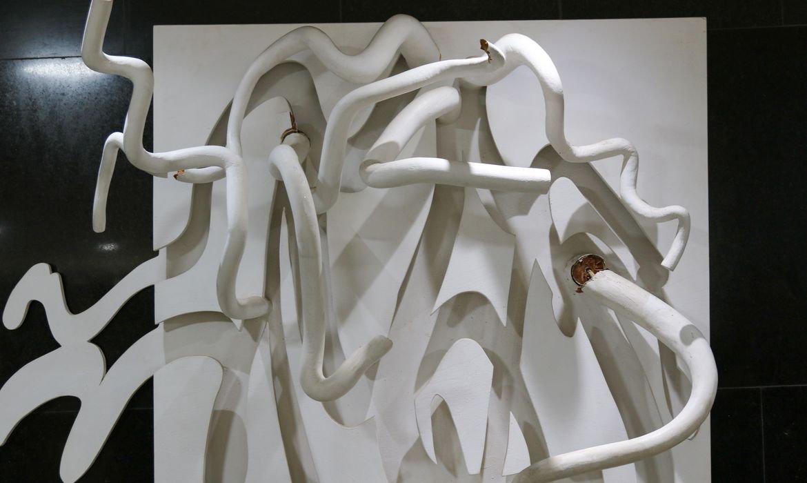 – Obra O Flautista, de Bruno Giorgi — a escultura em bronze foi encontrada completamente destruída, com pedaços espalhados pelo salão. Está avaliado em R$ 250 mil.
