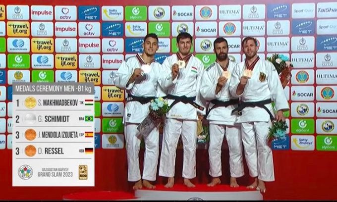 O judoca brasileiro Guilherme Schimidt, atual número nove do mundo na categoria 81 quilos, faturou a medalha de prata neste sábado (17), no Grand Slam de Astana (Cazaquitão).  Após vencer três lutas seguidas por ippon, o brasiliense de 22 anos foi superado na final por Somon Makhmadbekov (Tadjiquistão), ao sofrer três punições da arbitragem. Promessa do judô nacional, Schimidt volta a subir ao pódio quase um ano depois de conquistar dois ouros em Grand Slams (Turquia e Hungria) e ascender ao top 5 do ranking mundial da Federação Internacional de Judô (IJF, na sigla em inglês).