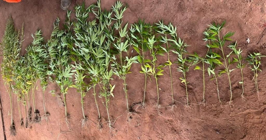 A equipe estava no local apurando um caso de ameaça. A vítima relatou que vizinhos, supostamente ligados a uma facção criminosa, estariam impedindo a leitura do medidor de energia elétrica de sua propriedade. Durante a verificação do endereço, os policiais observaram na casa do suspeito um canteiro que, à primeira vista, parecia de hortaliças comuns.