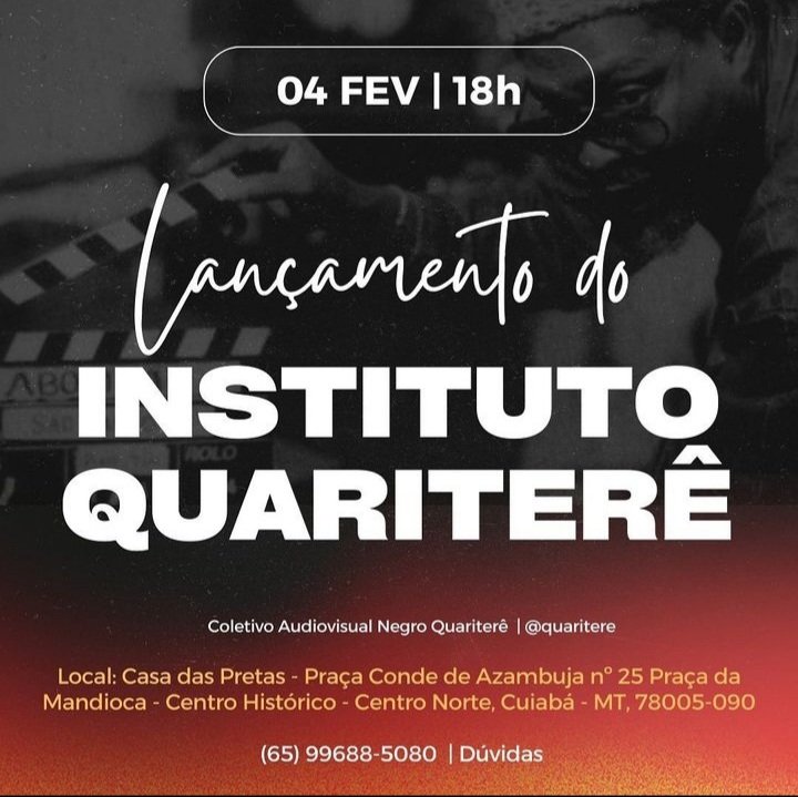 a partir das 18 horas, na Casa das Pretas, ocorrerá a celebração/lançamento do Instituto Quariterê.