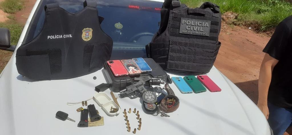 Os dois investigados foram localizados em uma residência na cidade de Campo Grande. Na casa onde foram presos, a equipe da DHPP Cuiabá e da Gerência de Operações Especiais, com apoio do Garras da Polícia Civil sul-matogrossense, localizaram quatro armas de fogo, uma delas, possivelmente, a pistola usada no duplo homicídio.