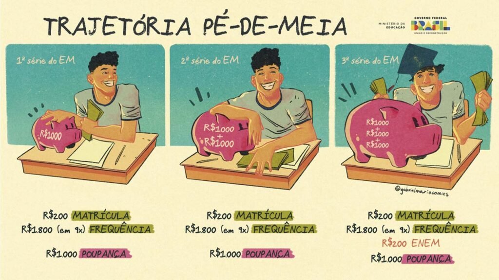O Pé-de-Meia funciona como uma poupança e tem o objetivo de evitar a evasão escolar, com a promoção da permanência dos estudantes nas escolas e, também, a conclusão desta última etapa do ensino básico.