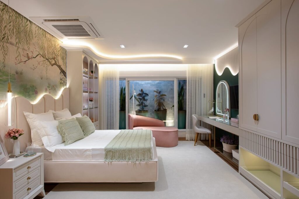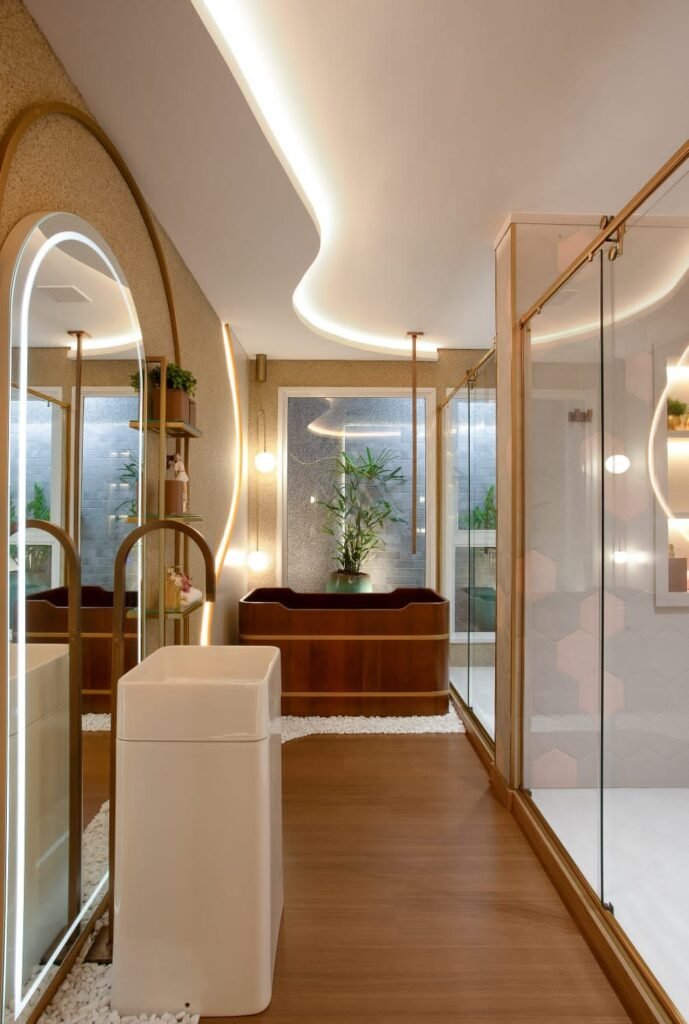 Josué Assis destaca a funcionalidade como um pilar central do projeto, destacando que “fugimos do estereótipo cor de rosa, visando criar um ambiente que não apenas cativa visualmente, mas que também proporciona funcionalidade em diversos aspectos. Do relaxante ofurô com vista para o jardim ao design que flui naturalmente, nosso objetivo é projetar ambientes que genuinamente atendam às necessidades e desejos das pessoas”.