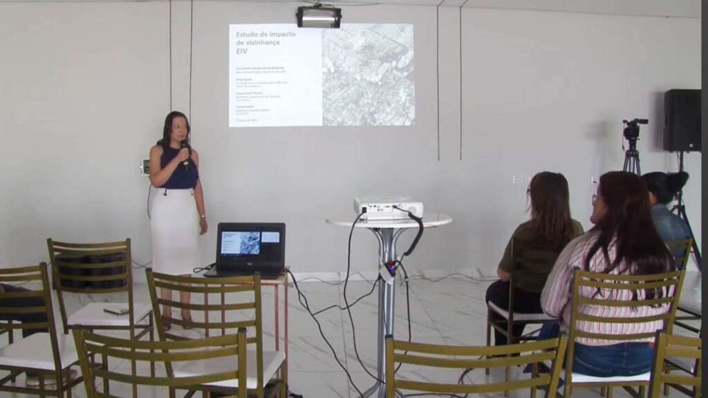 Durante a exposição, o arquiteto Jonathan Rabelo apresentou o diagnóstico completo do projeto, abrangendo características do empreendimento, área de influência, perfil socioeconômico da região, aspectos ambientais e as medidas mitigadoras propostas. “O objetivo é demonstrar os impactos urbanos, ambientais e sociais da implantação do condomínio, comprovar que o projeto atende às exigências legais e propor soluções adequadas para reduzir os impactos”, afirmou.