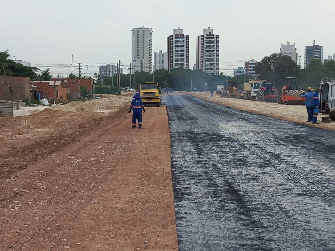 Segundo a fiscalização da obra, a previsão é que a capa asfáltica comece a ser executada na próxima semana.