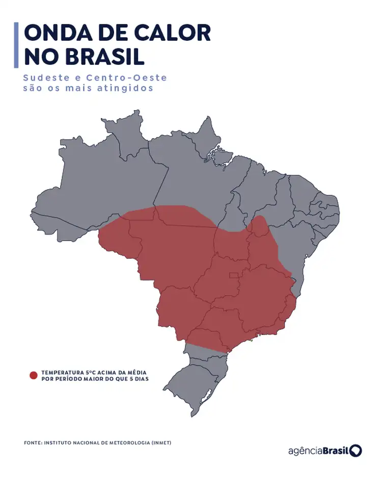 A onda de calor chegou em uma época do ano em que, normalmente, a estação chuvosa já está estabelecida e em que as nuvens funcionam como uma espécie de controle das temperaturas. A ausência dessa defesa, segundo a meteorologista do Instituto Nacional de Meteorologia (Inmet) Anete Fernandes, potencializa os efeitos do fenômeno climático.