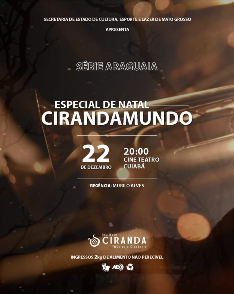 Mais uma temporada artística da Orquestra CirandaMundo está chegando ao fim. E como já se tornou tradição em Mato Grosso, o concerto de encerramento evoca todo o espírito e musicalidade natalina. O “Especial de Natal” acontece nesta quinta-feira (22), às 20h, no Cine Teatro Cuiabá. Os ingressos podem ser retirados antecipadamente na Casa de Bem-Bem (Rua Barão de Melgaço, 3963 – Centro), sede do Instituto Ciranda, basta levar dois quilos de alimento não perecível para doação.