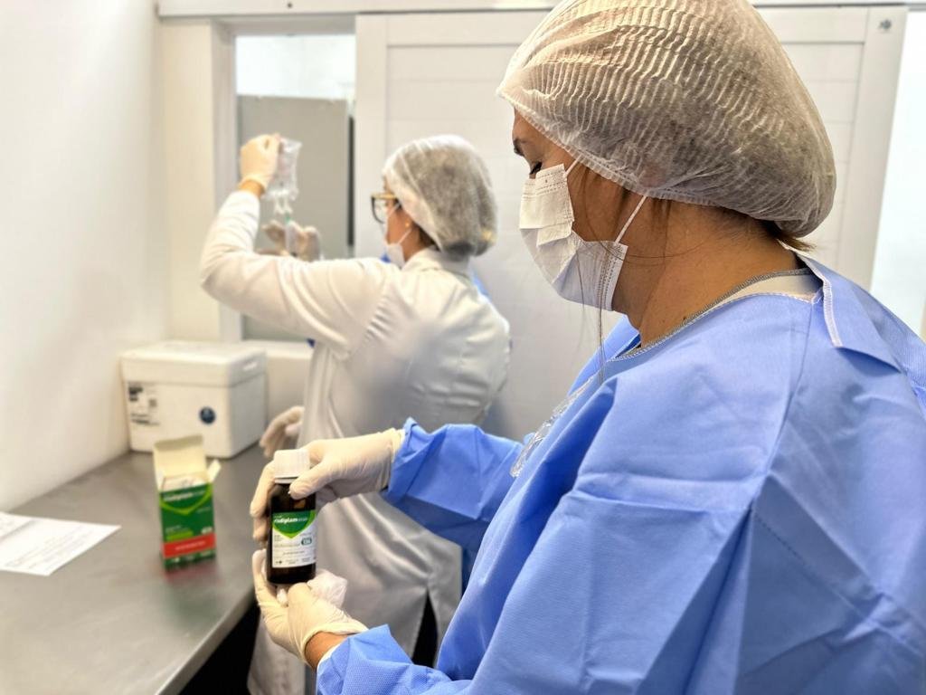 Antes de entregar o remédio aos pais de Bela, os farmacêuticos da SES passaram por capacitação sobre AME e sobre o preparo do composto.