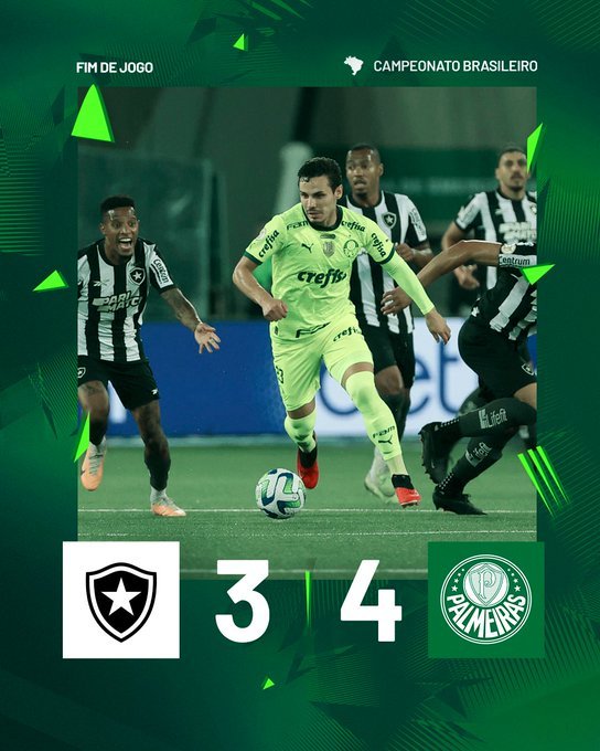 A partir daí o Alvinegro se perdeu em campo e não conseguiu segurar um Palmeiras comandado por Endrick. Aos 38 o jovem marcou mais um e aos 43 iniciou a jogada do gol de empate de Flaco López. O Verdão continuou tentando e conseguiu a virada, já aos 53, com o zagueiro Murilo.