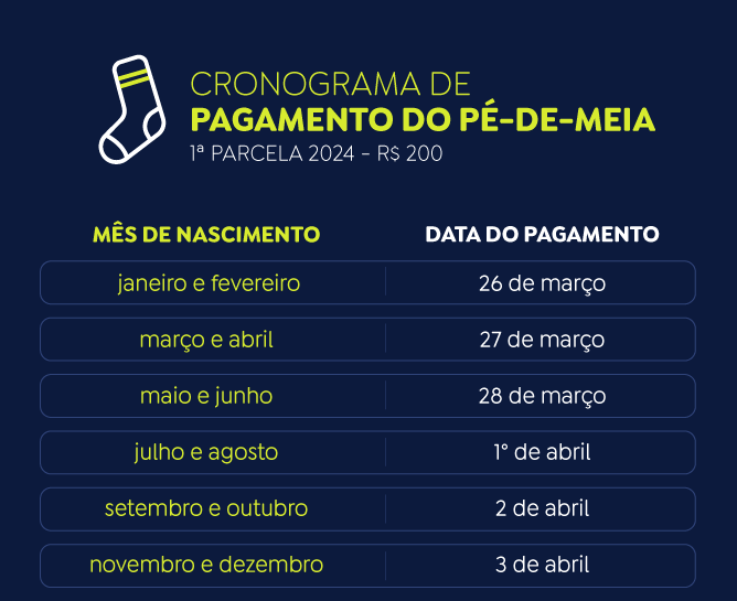Confira abaixo o cronograma de pagamento da primeira parcela do Pé-de-Meia