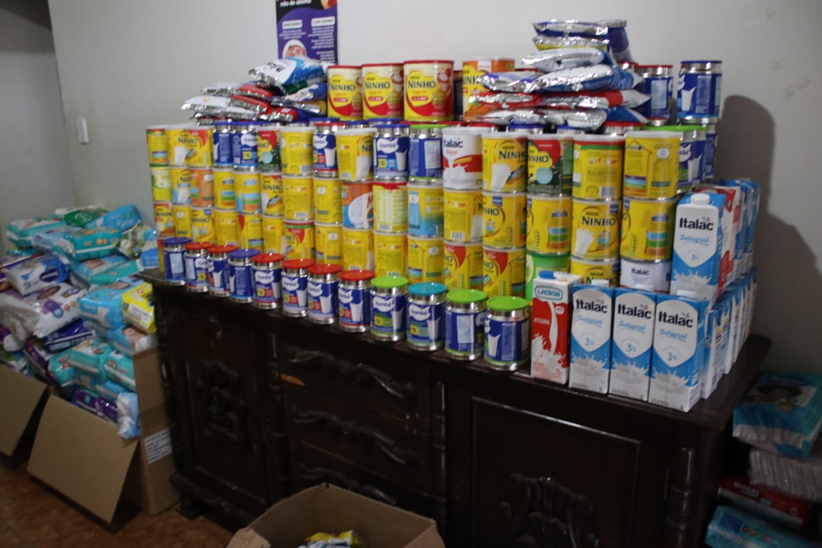 Ao todo, foram arrecadados 400 latas de leite em pó, 40 caixas de leite integral e cerca de 150 pacotes de fralda de diversos tamanhos. A presidente da associação Quero Viver, Rute Oliveira, agradeceu o recebimento das doações e a parceria realizada com a Polícia Militar.