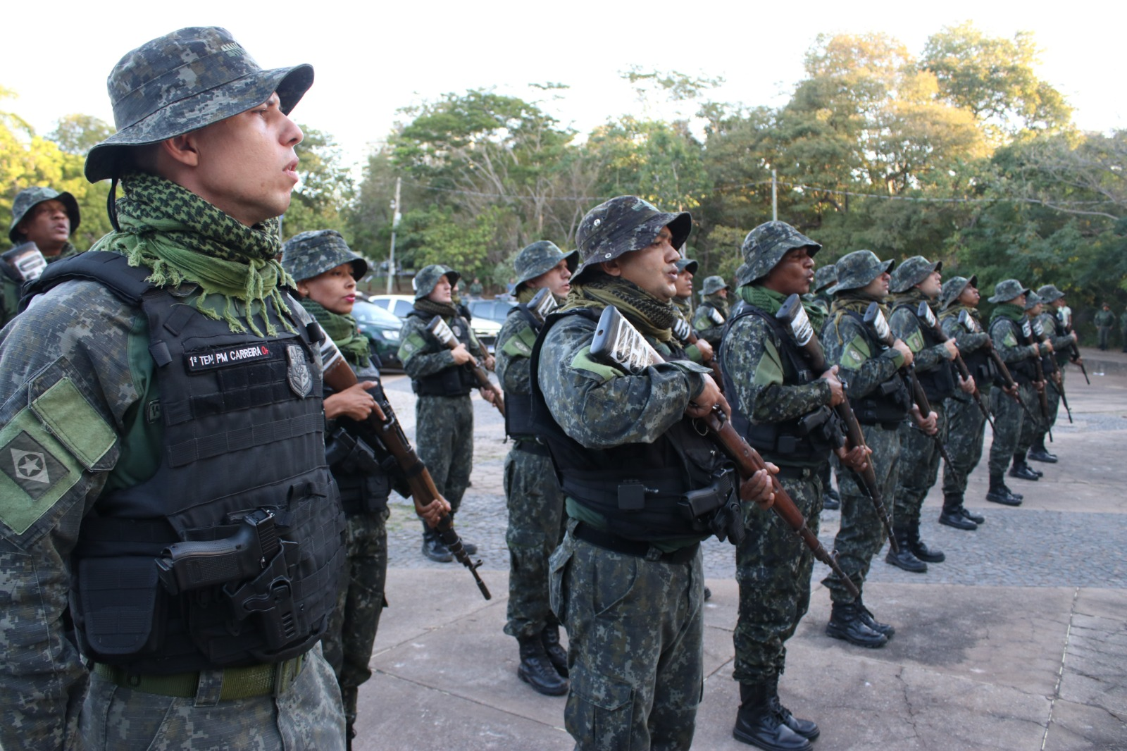 A Polícia Militar de Mato Grosso realizou, na tarde desta segunda-feira (26.06), a formatura do 5º Curso de Policiamento Ambiental, em solenidade no Parque Mãe Bonifácia, em Cuiabá. A turma foi composta por 32 policiais de Mato Grosso, Acre, Rondônia e Tocantins.