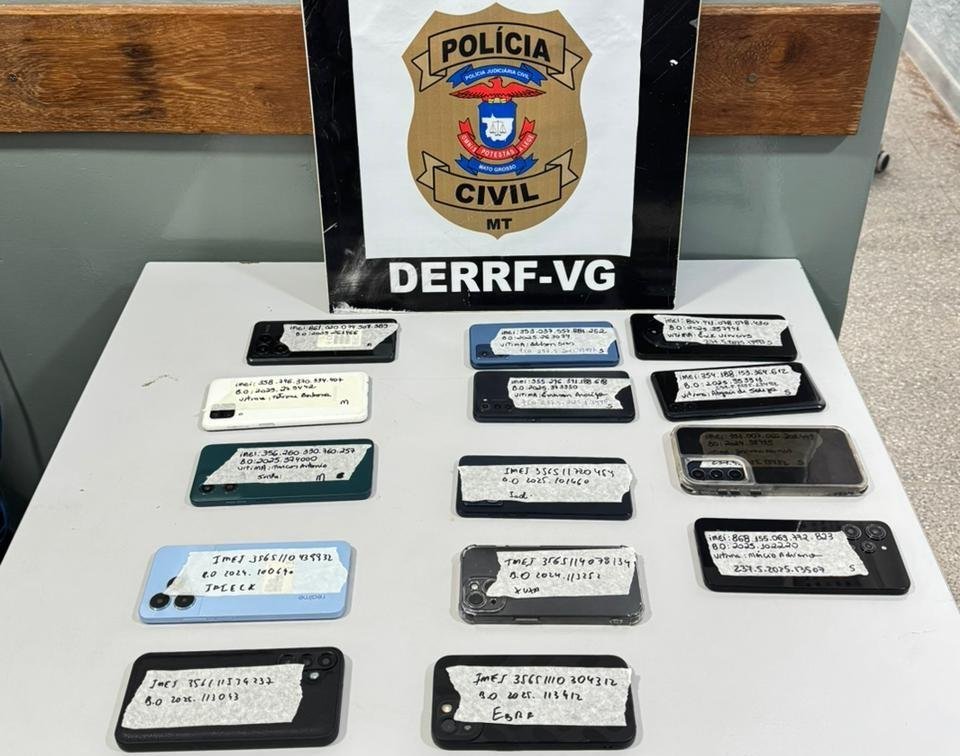 Os aparelhos recuperados estão relacionados a investigações conduzidas pela Delegacia Especializada de Roubos e Furtos (Derf) de Várzea Grande, referentes a ocorrências registradas em diferentes regiões do município.