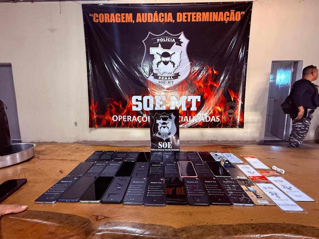 Nos primeiros 80 dias de ações do programa Tolerância Zero às Facções Criminosas, a Polícia Penal de Mato Grosso realizou 158 operações de revistas em unidades penitenciárias e apreendeu 1.321 celulares. As ações, coordenadas pela Secretaria de Estado de Justiça (Sejus), também resultaram na apreensão de 430 chips, 562 carregadores, 2.265 porções de drogas, 141 armas artesanais, 235 garrafas de bebidas artesanais e 207 fones de ouvido.