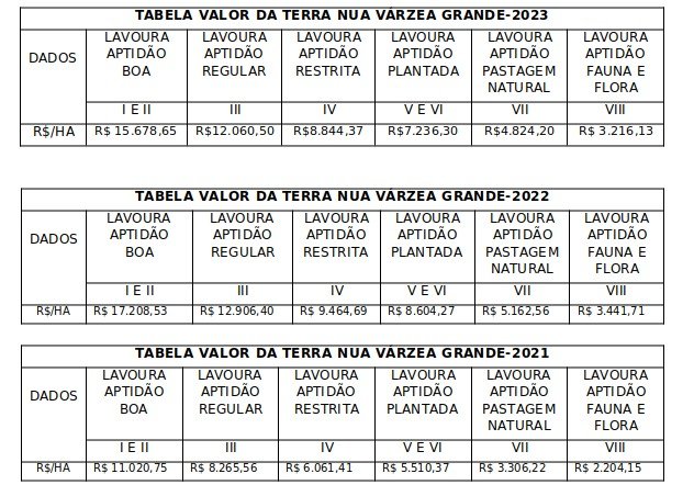Portanto, em observância ao Princípio Constitucional de Publicidade, o Município de Várzea divulgou o Valor da Terra Nua (VTN) dos exercícios de 2021, 2022 e 2023, para todos os Contribuintes com cadastro de imóvel localizado fora da zona urbana do município.