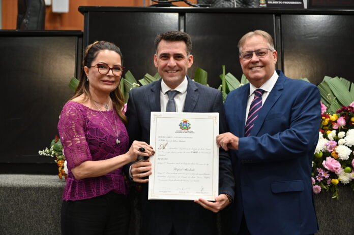 Atualmente em seu segundo mandado como prefeito de Campo Novo do Parecis, Rafael Machado recebeu na noite da última quarta-feira (07), o título de cidadão Mato-grossense. A honraria foi concedida pela Assembleia Legislativa do Estado Mato Grosso.