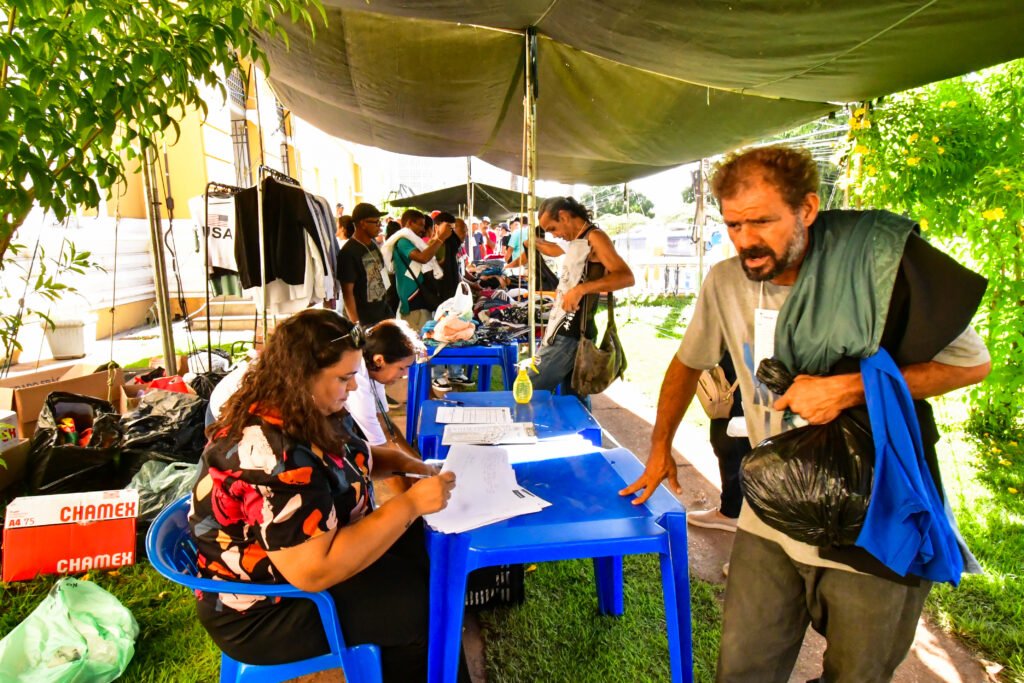 As dependências do Palácio Instrução, na região central de Cuiabá, recebeu o Mutirão Pop Rua promovido pelo Tribunal Regional Eleitoral de Mato Grosso – TRE MT nesta sexta-feira (19). Desde o início da manhã, a Prefeitura de Cuiabá, por meio da Secretaria Municipal de Assistência Social, Direitos Humanos e da Pessoa com Deficiência, participa da iniciativa com a equipe do Centro de Referência Especializado à População em Situação de Rua – Centro Pop, com a oferta de serviços como cadastramento no programa CadÚnico para acesso aos benefícios do Governo Federal, triagem para encaminhamentos para as unidades de acolhimento e o Cabide Solidário, sendo esse um dos serviços mais procurados pela população em situação de rua e ou vulnerabilidade social.