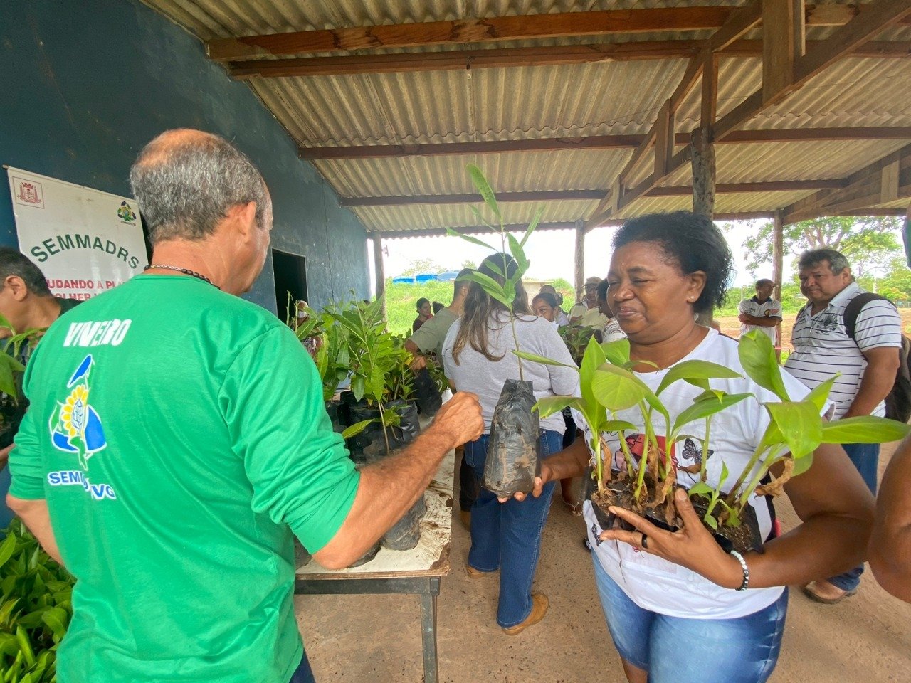 “Criamos o viveiro para produzir mudas de árvores frutíferas e nativas para que vocês possam recuperar possíveis áreas degradadas, ajudar a recompor matas ciliares de córregos e rios porque é importante conciliar a agricultura familiar com a preservação ambiental porque vocês sabem que se a gente destruir as margens e nascentes de rios nós vamos ter problemas no futuro, inclusive a falta de água”, disse o secretário Célio dos Santos, ao realizar a entrega de mudas.