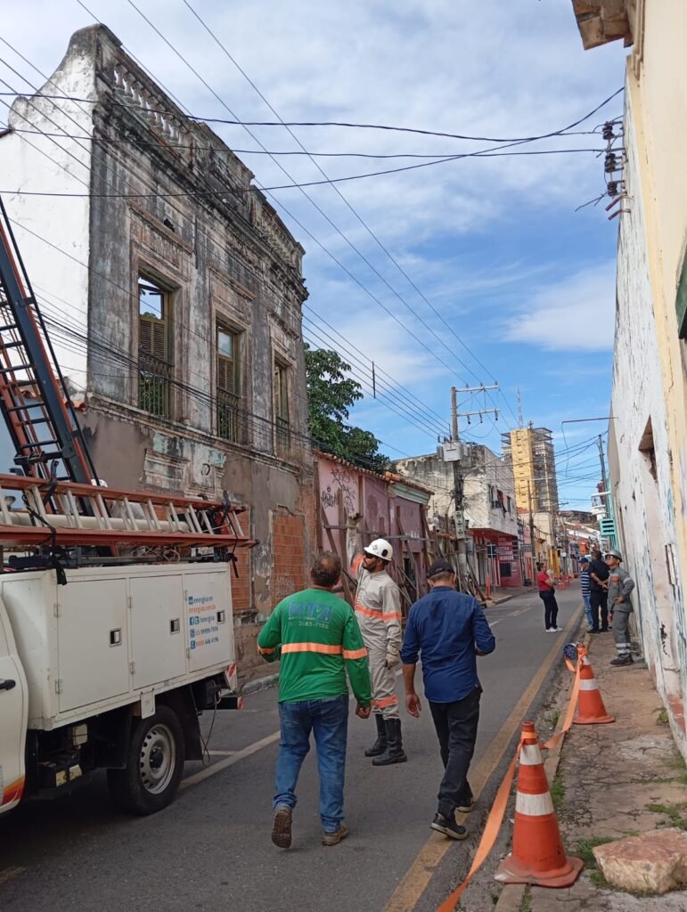 “Estamos realizando uma operação conjunta, com apoio da Energisa, que isolou a área para permitir a atuação dos guindastes na remoção do telhado. O trabalho é feito telha por telha para aliviar o peso sobre a estrutura e preservar a fachada. Esse é o primeiro passo. Na próxima semana vamos instalar pilares de sustentação para alinhar a parede e, posteriormente, avançar para o projeto de recuperação”, explicou.