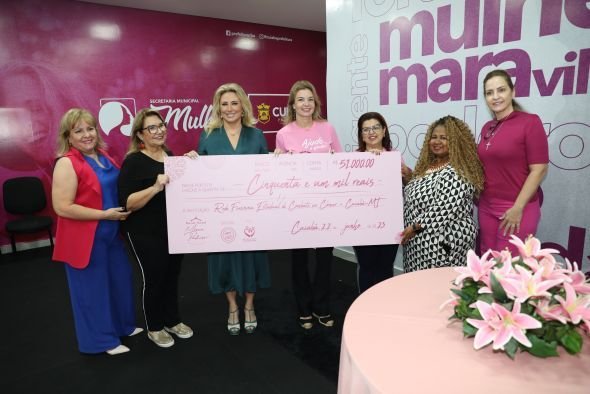 A primeira-dama Marcia Pinheiro repassou à Rede Feminina de Combate ao Câncer R$51 mil arrecadados na 3ª edição do Bazar Solidário Social. A cerimônia de entrega foi realizada nesta quinta-feira (22) no auditório da Secretaria Municipal da Mulher.